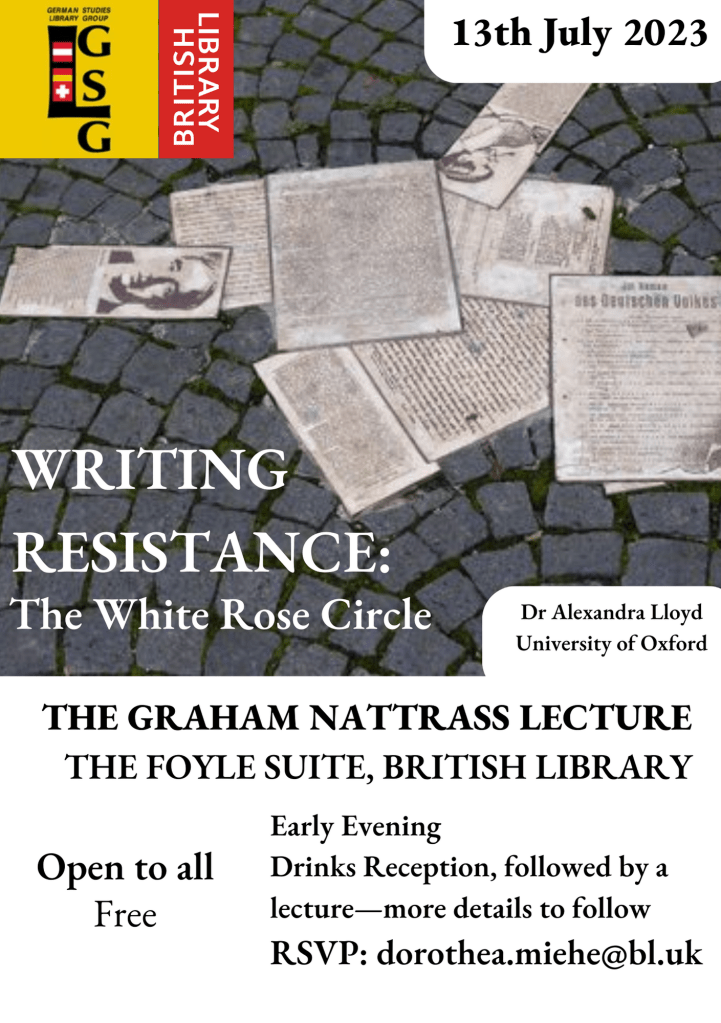 18.00: Lecture: Dr Alexandra Lloyd, University of Oxford—‘Writing Resistance: The White Rose Circle’